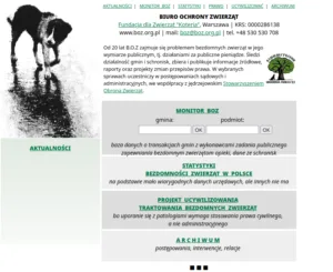 W dziale Archiwum https://www.boz.org.pl/arch/index.htm znajdują się dokumenty dotyczące postępowań urzędowych, interwencji, relacji z wybranych schronisk.[/vc_column_text][/vc_column][vc_column width=”1/3″][vc_column_text css=””]